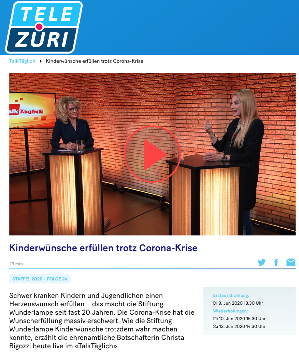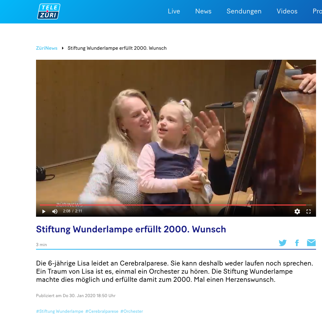 Tele Züri ZüriNews | Stiftung Wunderlampe erfüllt 2000. Wunsch